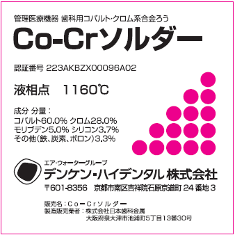 | 一般的名称 | 歯科用コバルト・クロム系合金ろう |