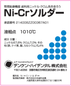 | 一般的名称 | 歯科用ニッケル・クロム系合金ろう |